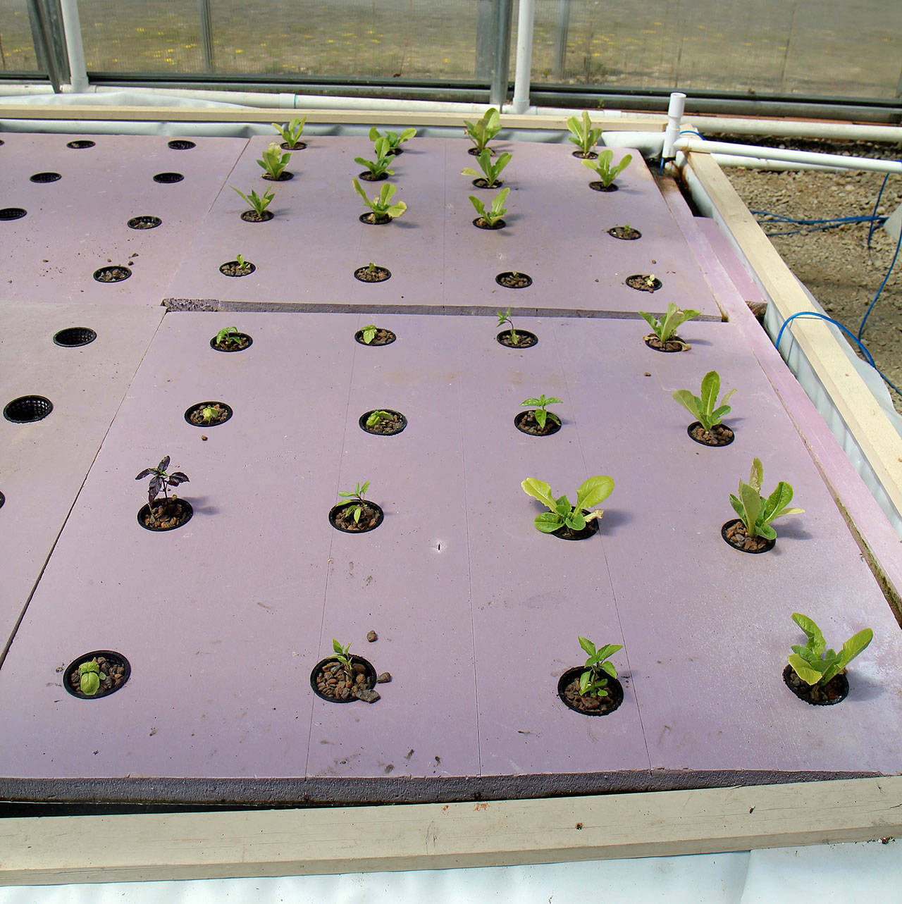 The aquaponics system, like the garden, eventually will help feed the students. Romaine lettuce and several types of basil already are growing in beds, along with some other plants in deep-water raft and flood-and-drain beds built on site.